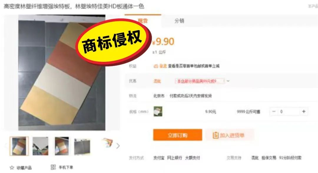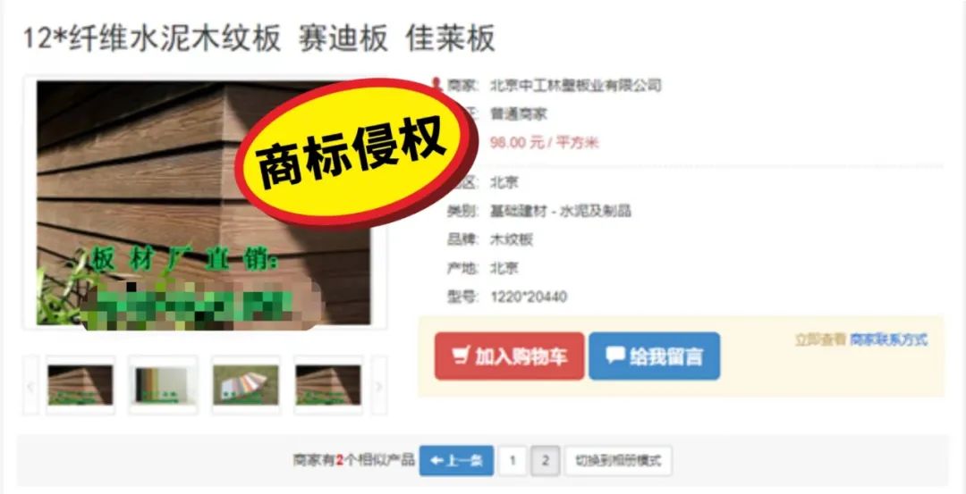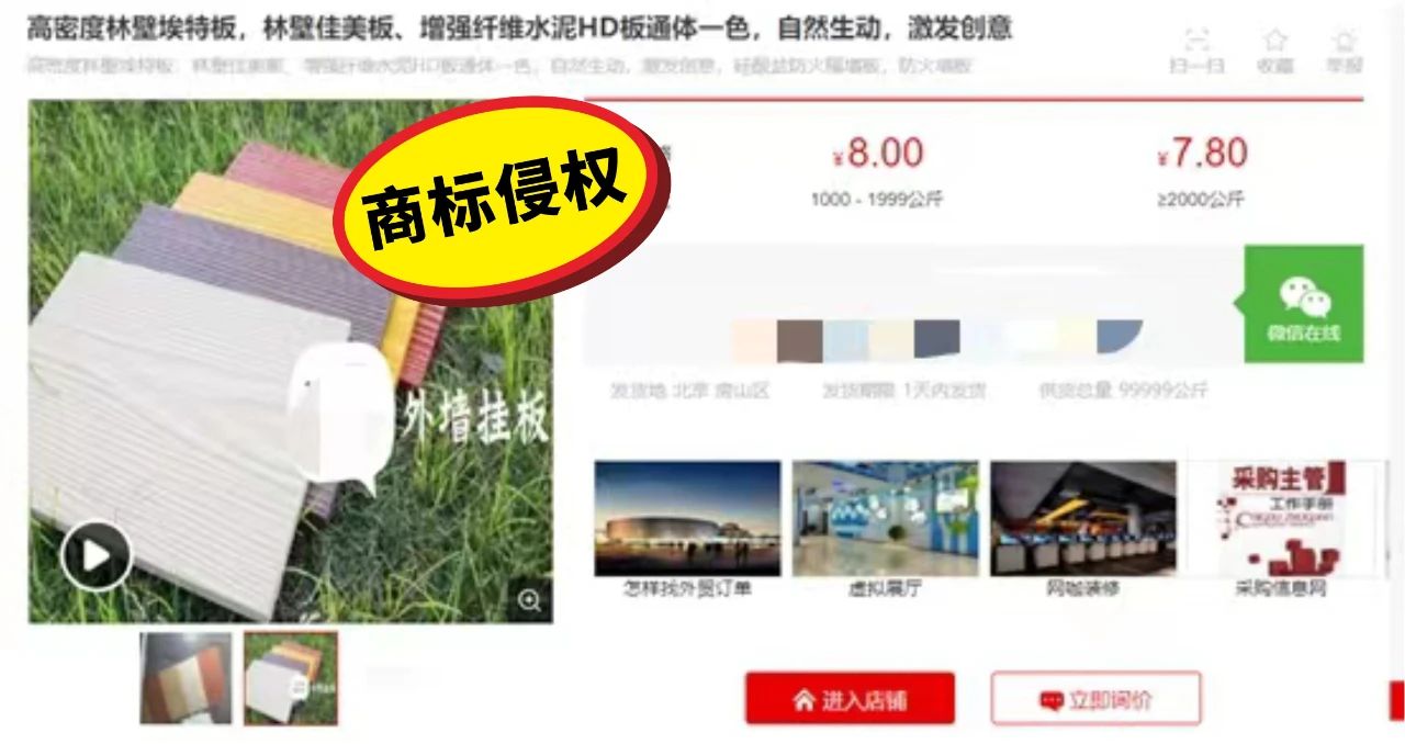在本案中,“北京中工林壁板業有限公司”在“杭州商易信息技術有限公司”經營的“建材網”上進行建筑板材產品的招商推廣,大量使用了“埃特”、“埃特佳美”、“佳壁”、“賽迪”及“佳萊”等,同時也在“1688批發網”、“九正建材網”、"中國供應商網”等平臺上銷售、招商推廣其板材產品,同樣大量使用“埃特”、“埃特佳美”、“佳壁”、“賽迪”及“佳萊”等標記,相關侵權及不正當競爭行為的部分證據如下:
