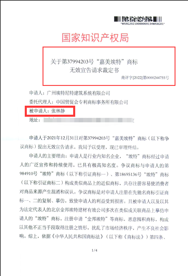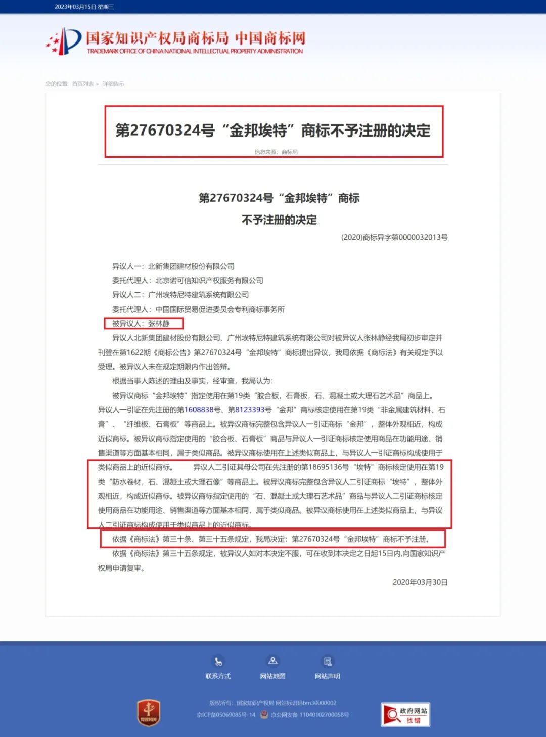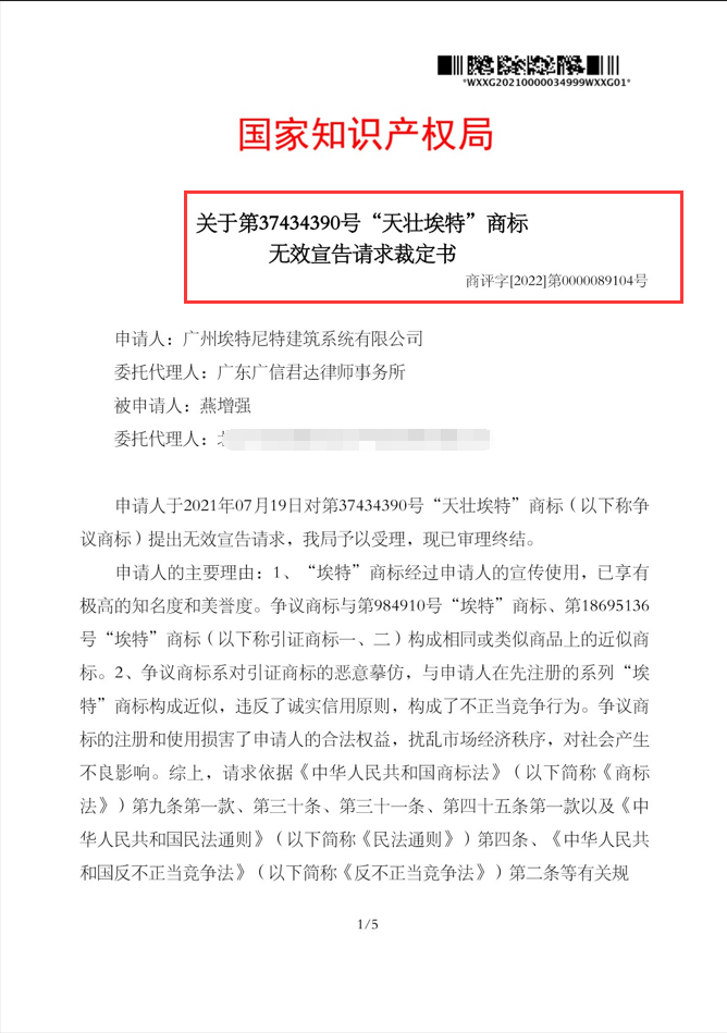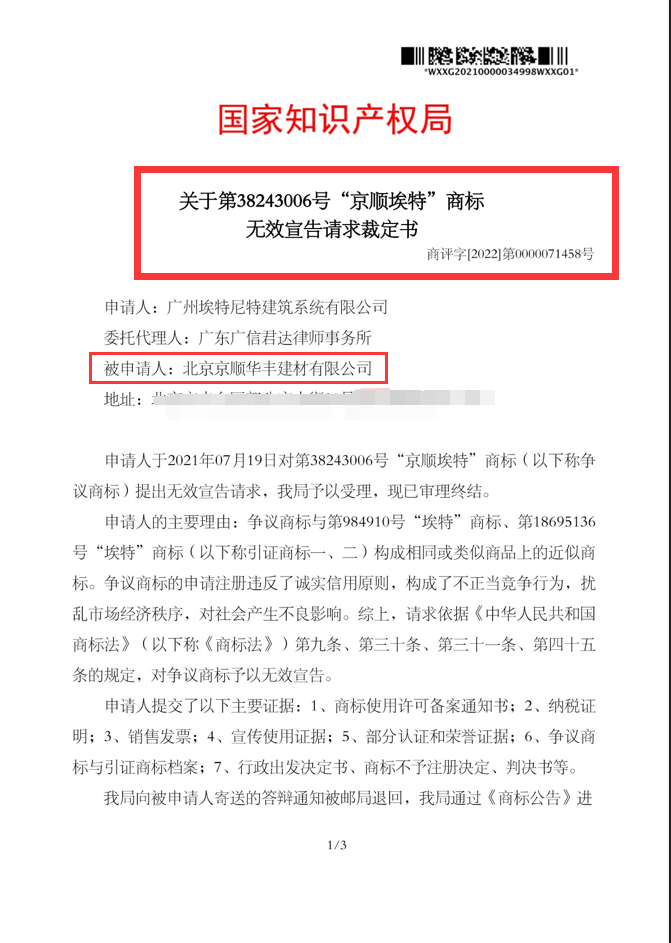 廣州埃特尼特建筑系統有限公司依法注冊持有或獲埃泰集團(Etex Group)授權使用“埃特尼特?、埃特?、Eternit?、埃特尼特佳美?、埃特佳美?、佳萊?、佳壁?、賽迪?、瓷力?”等數十個商標,應受到法律保護。中工林壁公司在生產銷售同類建筑材料產品過程中,在未經授權允許的情況下擅自使用與廣州埃特尼特建筑系統有限公司注冊商標相同的字眼,杭州商易信息技術有限公司作為“建材網”平臺的運營者,沒有對商家的侵權行為盡到合理注意義務,兩者行為均構成侵權,應當承擔相應法律責任。為此,我司委托專業律師團隊針對“北京中工林壁板業有限公司”和“杭州商易信息技術有限公司”的商標侵權、不正當競爭行為,于2021年11月30日向法院提起訴訟。經過長達一年有余的審理,北京市東城區人民法院于2022年12 月5日對此案件作出判決,判令被告北京中工林壁板業有限公司的法人代表羅林華及股東李保軍、杭州商易信息技術有限公司于判決生效之日起立即停止侵犯我司相關注冊商標,并賠償我司經濟損失300000元 及合理支出26500元。